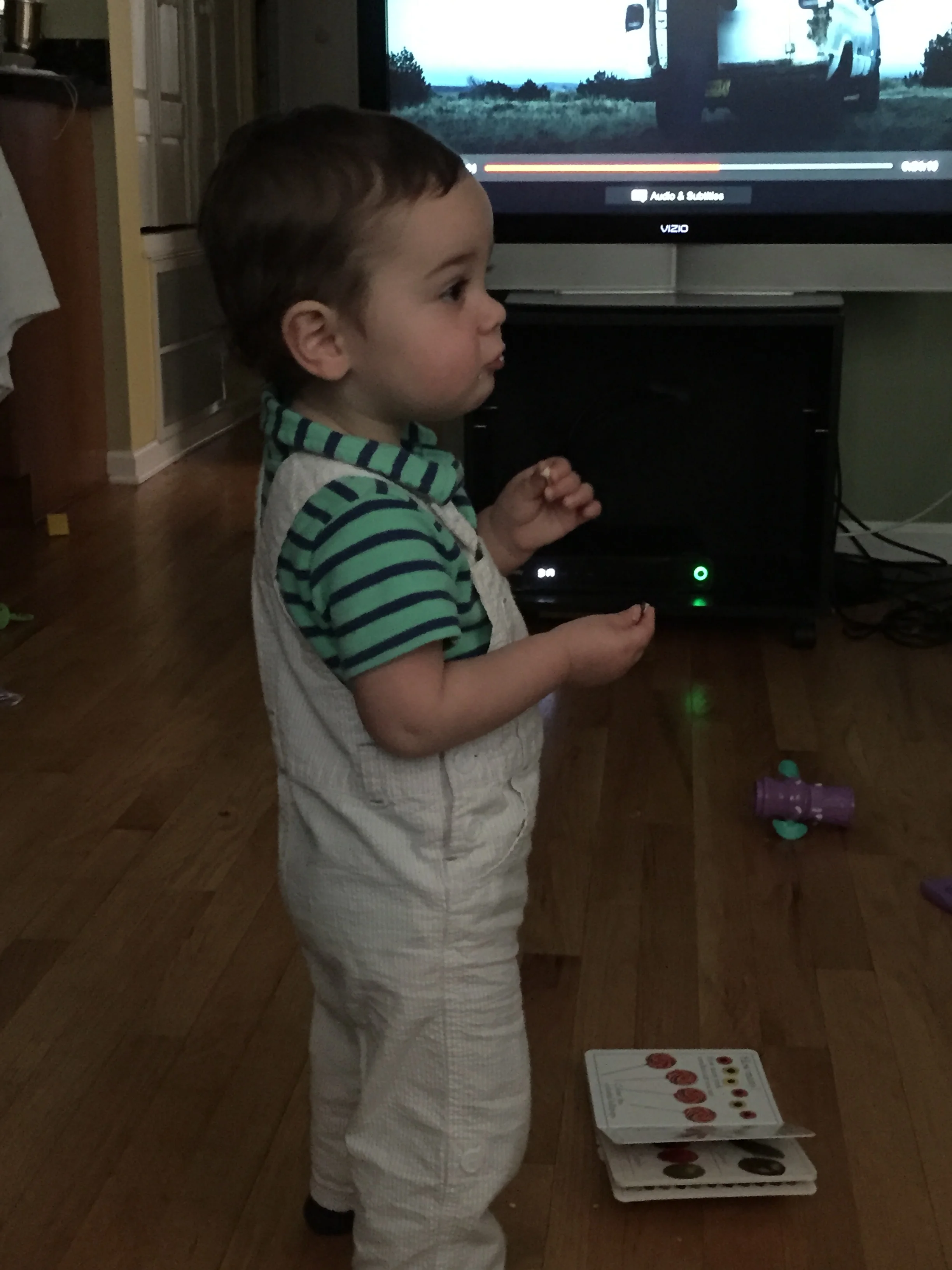 Today Elias went on two walks. It was so warm, he just needed a couple layers! He got more comfortable walking in his shoes, and enjoyed directing himself down the sidewalk. He still does not want to hold hands!
